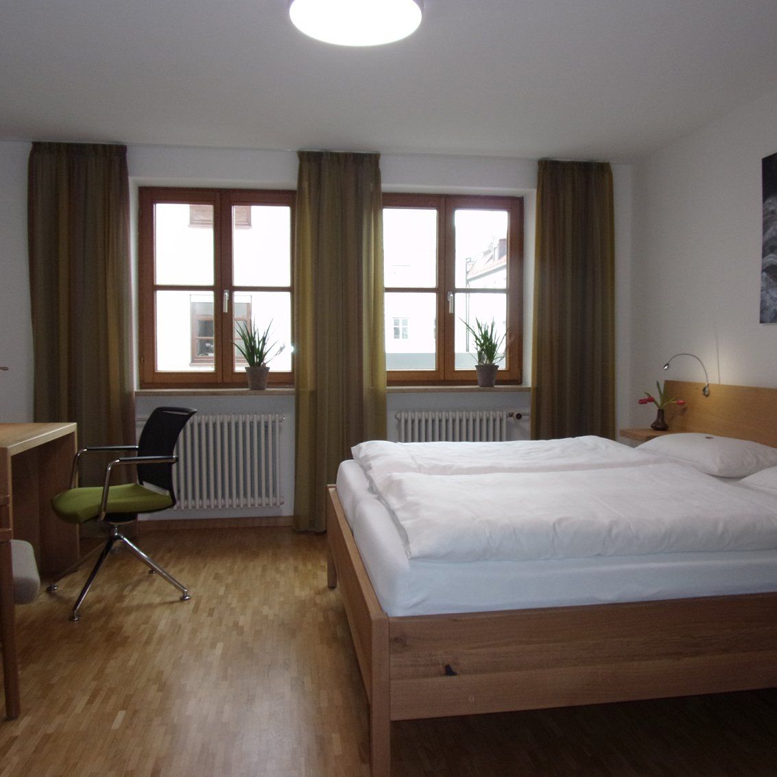 in neu ökologisch ausgestatteten Einzel- und Doppelzimmern wohnen, die den Geist unseres Hauses widerspiegeln